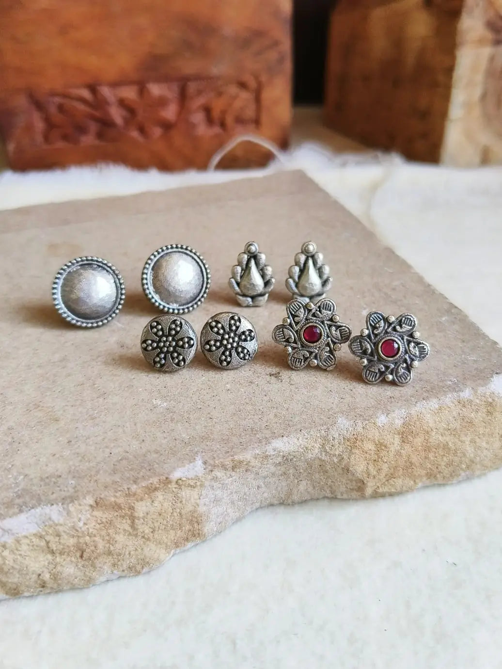Elevate your everyday elegance with Sarichka’s oxidised silver small stud earrings combo – a perfect mix of tradition and trend!