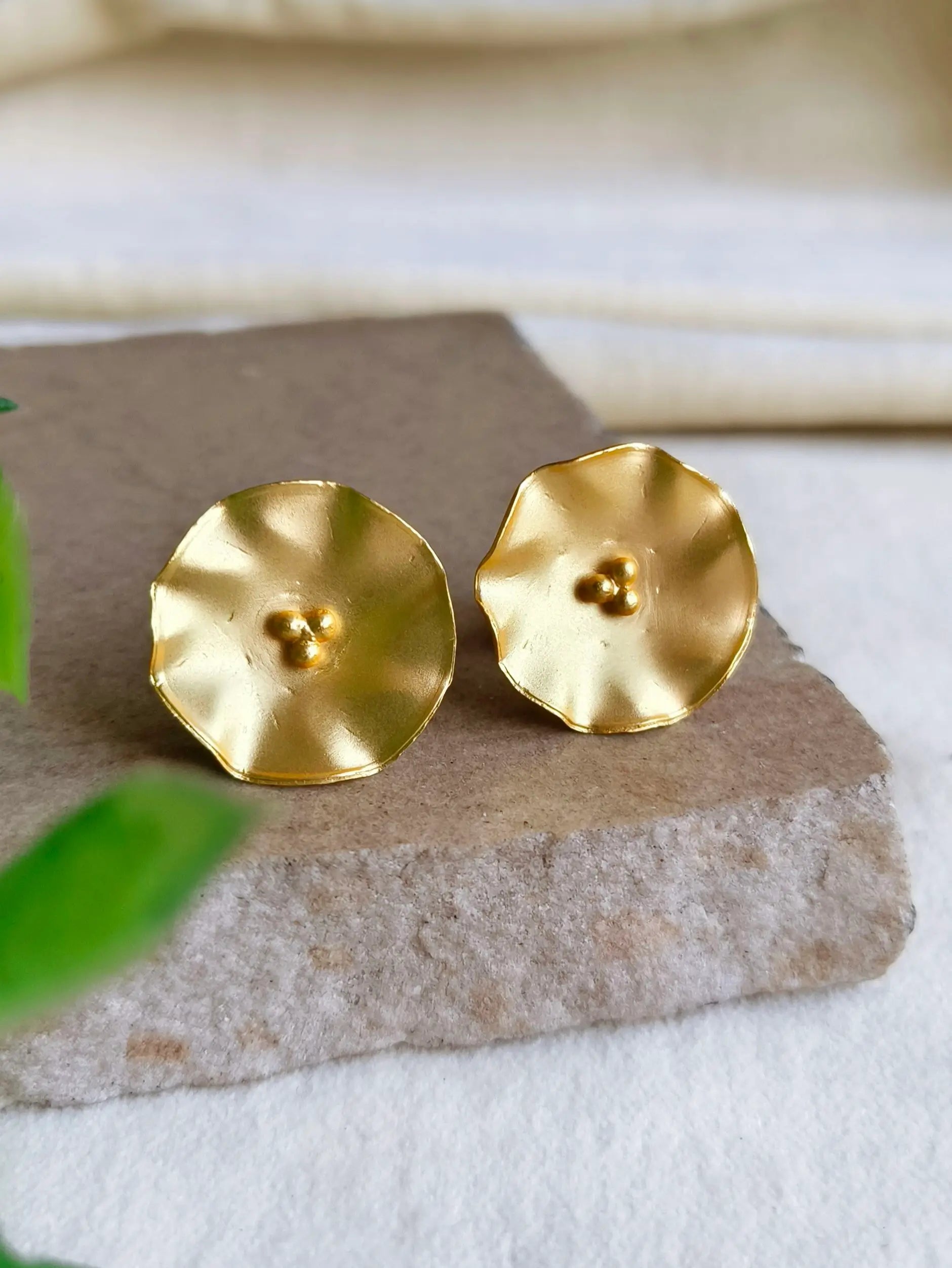 Add a touch of elegance to your everyday look with these gold-plated brass floral stud earrings. Designed for comfort and style, these earrings are the perfect blend of sophistication and simplicity.