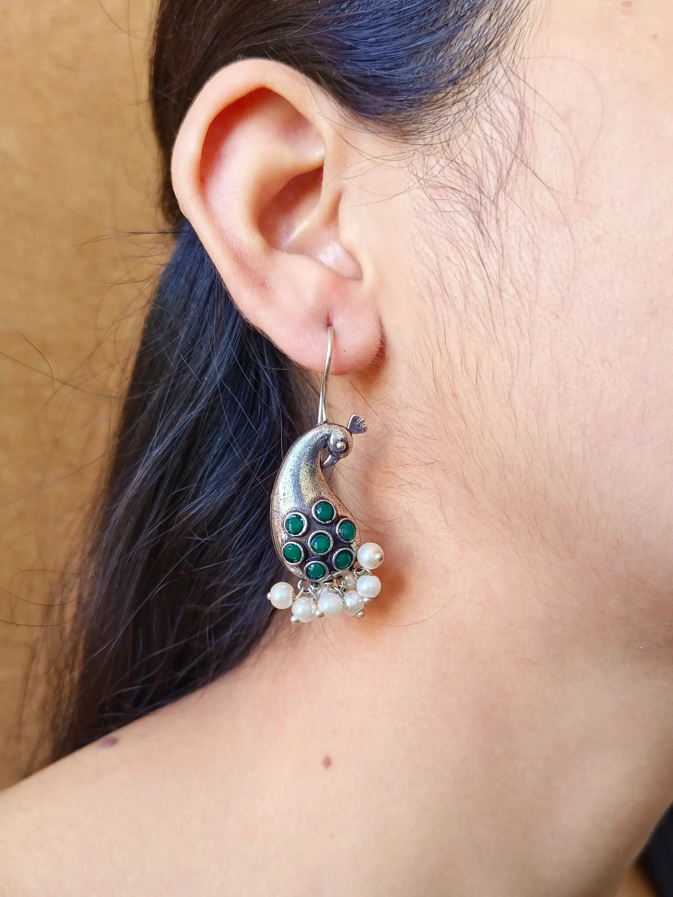 These oxidised German silver Keri hook earrings are a perfect blend of vintage charm and traditional design. Featuring an elegant Keri (mango) motif, they add a unique touch to any ethnic or festive attire. The oxidised finish enhances the intricate details, making these earrings stand out with timeless elegance. Whether for a wedding, cultural event, or casual traditional wear, they bring sophistication to any occasion. These earrings also make a thoughtful gift for someone who loves subtle yet striking pieces. Pair them with sarees, lehengas, or fusion styles for a refined look.