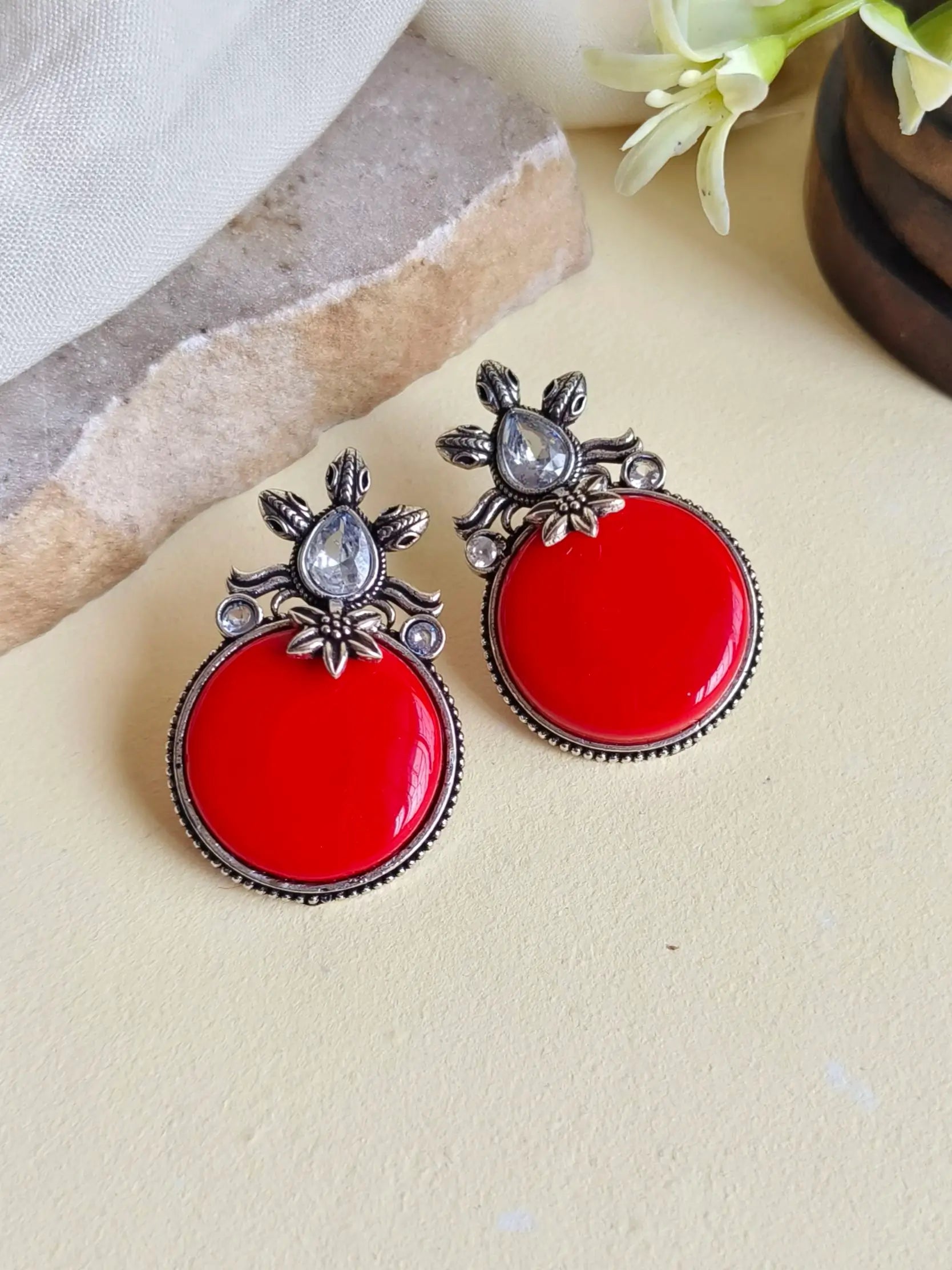The oxidised Monalisa stone stud earrings offer a refined touch to your daily wardrobe. With their timeless design and premium finish, they are ideal for both casual wear and adding a dash of sophistication to any ensemble. Whether you're heading to the office or enjoying a casual day out, these studs ensure you'll always look stylish.