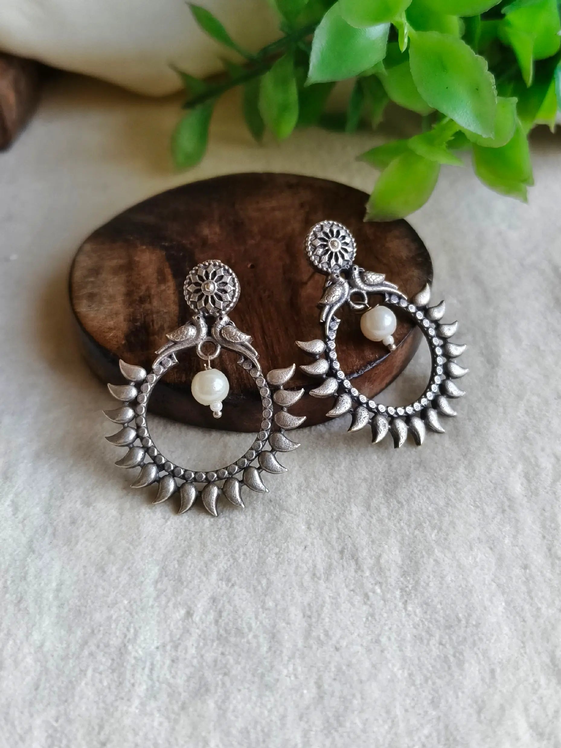 Elevate your ethnic elegance with these oxidized chand bali-style stud earrings from Sarichka Fashion. Crafted with a traditional crescent moon design and intricate engravings, they bring a rich vintage charm to any ensemble. The oxidized silver finish adds a rustic yet regal touch, making them a timeless accessory.