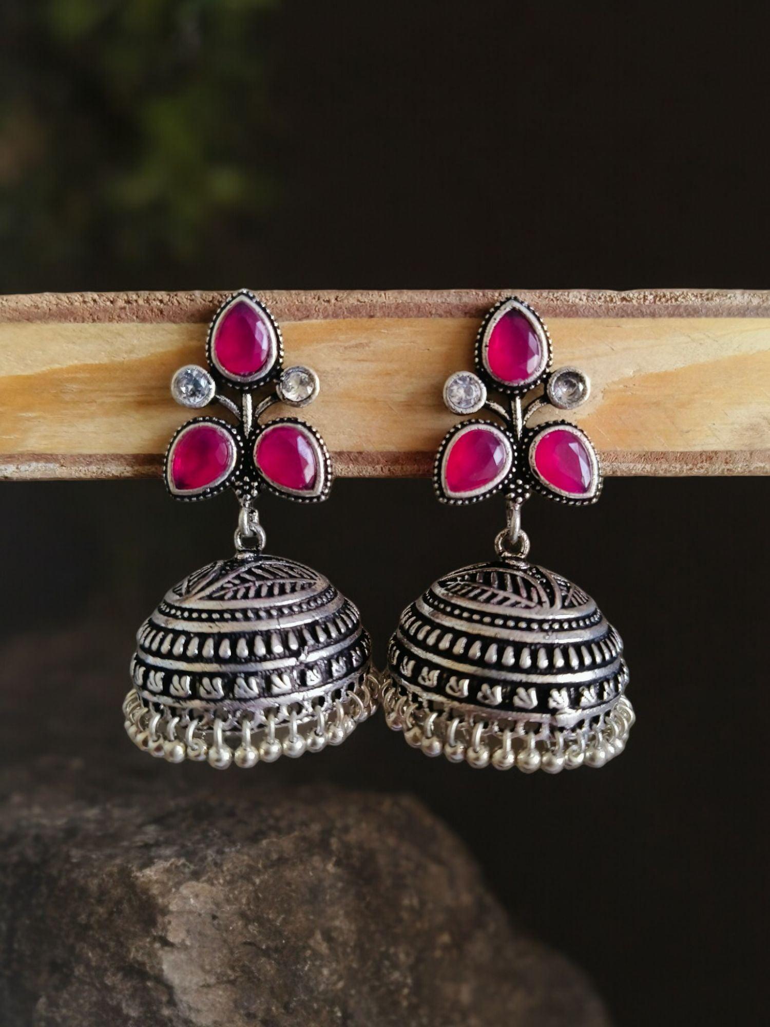 These premium quality oxidised jhumka earrings are the perfect blend of tradition and elegance. The ghungroos add an extra dimension of style, producing a melodic sound with every movement. Crafted with care, these earrings are ideal for weddings, festivals, or any occasion requiring a touch of ethnic charm. Gift them to someone special or add them to your collection for a distinctive and meaningful look. Shop from Sarichka Fashion to elevate your ethnic wardrobe with these timeless beauties!