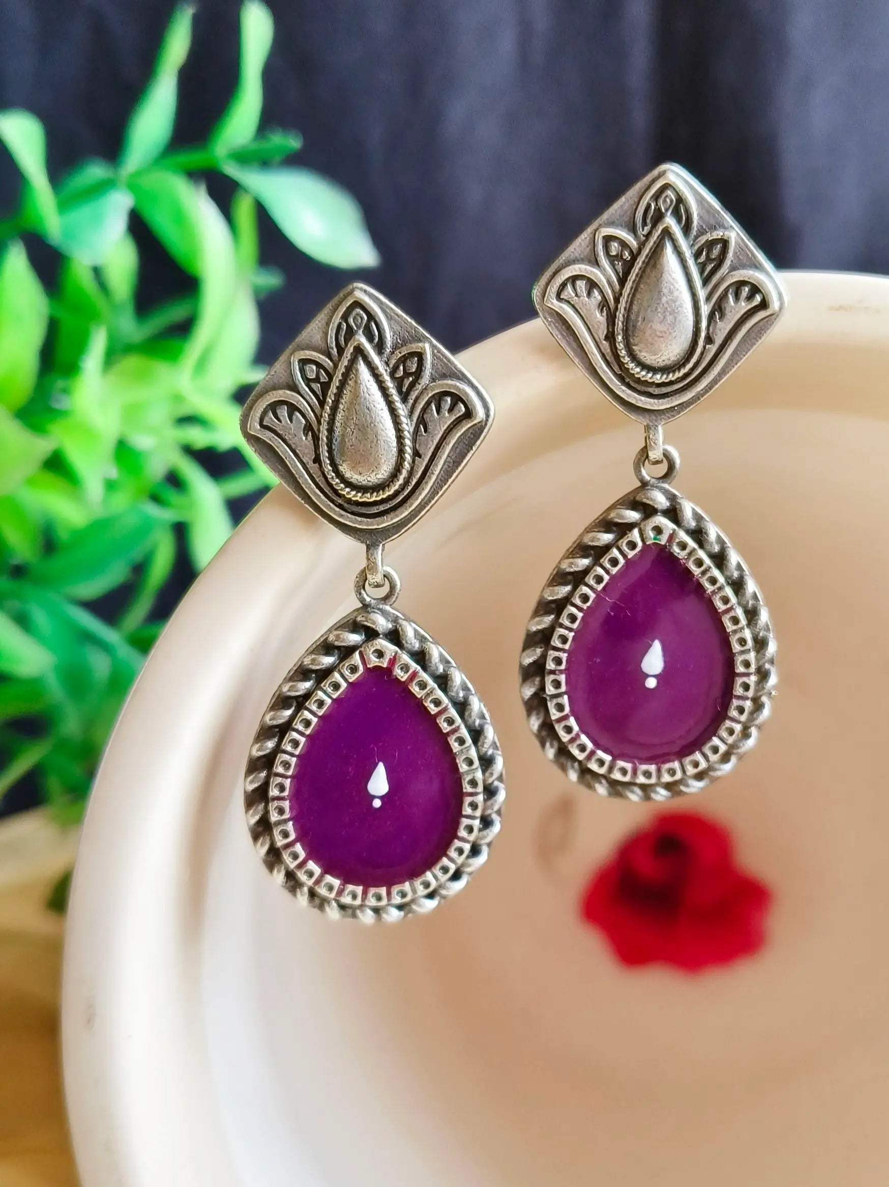Add a pop of color and artistry to your collection with these silver look-alike hand-painted enamel dangler earrings, perfect for any occasion.