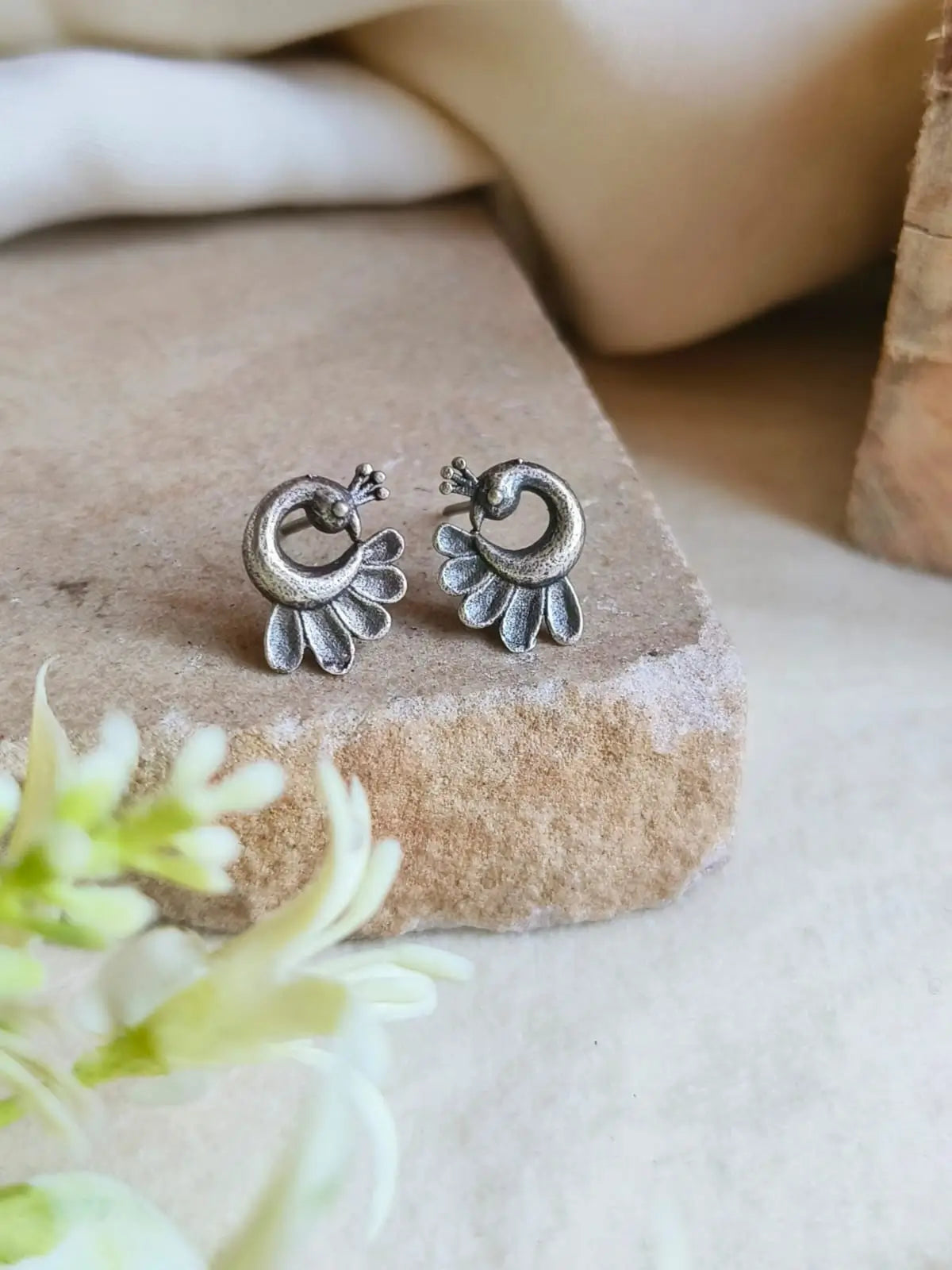 Embrace understated elegance with these silver-plated peacock stud earrings—available exclusively at Sarichka!