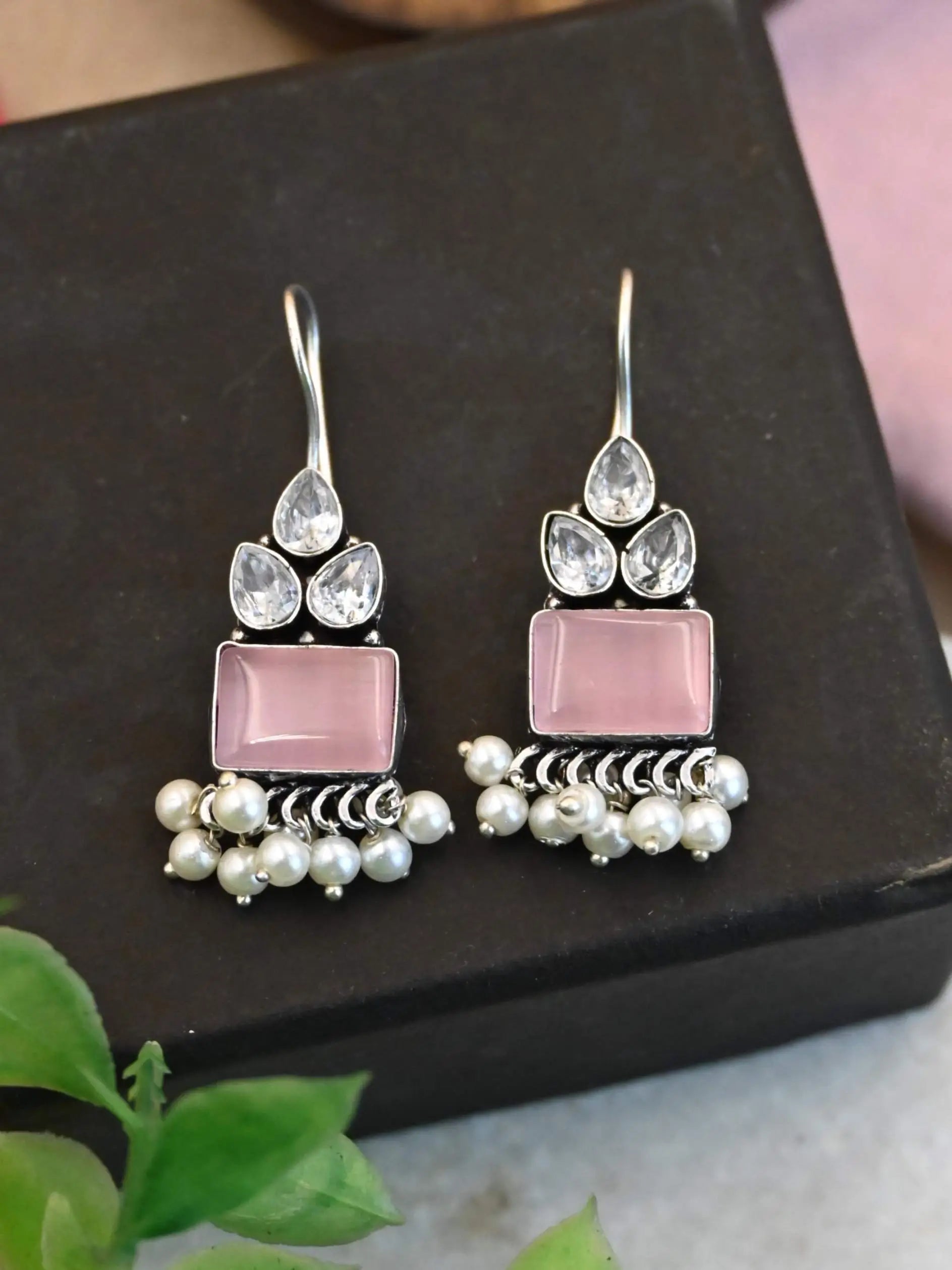 Elevate your everyday look with these trendy German silver hook earrings, featuring exquisite pearl drops that add a touch of elegance to any outfit.